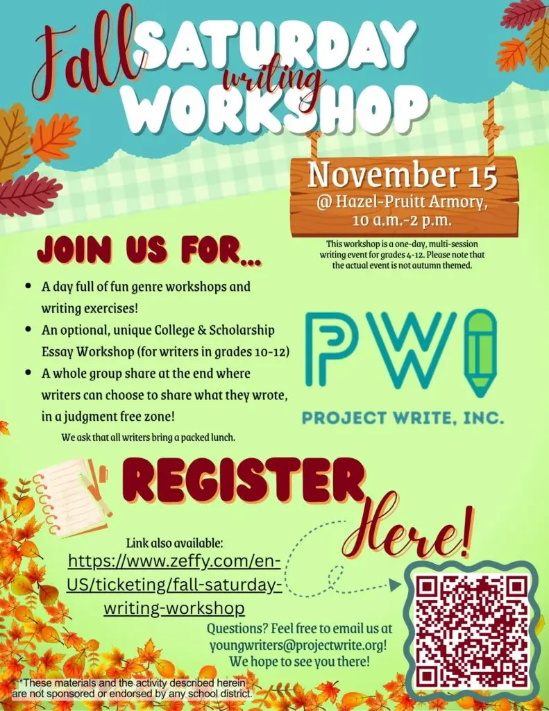 Join us for a day of genre workshops at Shenandoah University’s main campus in Winchester, Va. Sessions may include Building Blocks Writing Prompts, Collaborative Storytelling, Fantasy, Horror, Humor, Poetry, and World-building for writers in grades 4-7 and 8-12. A special college & scholarship essay workshop is also offered for writers in grades 10-12.
